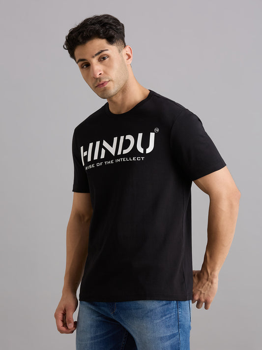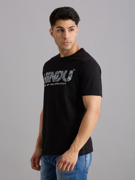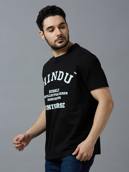 BLACK RIBNECK PUFFED PRINT HINDU UNIVERSE CONTEMPORARY STYLE