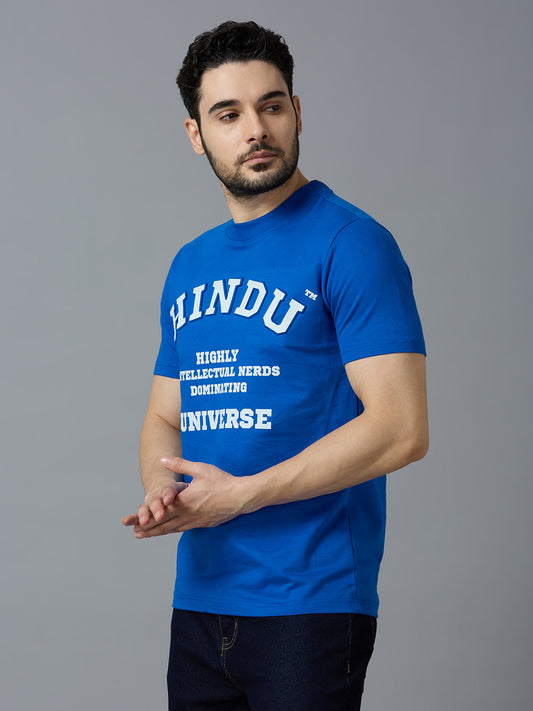 BLUE RIBNECK PUFFED PRINT HINDU UNIVERSE CONTEMPORARY STYLE