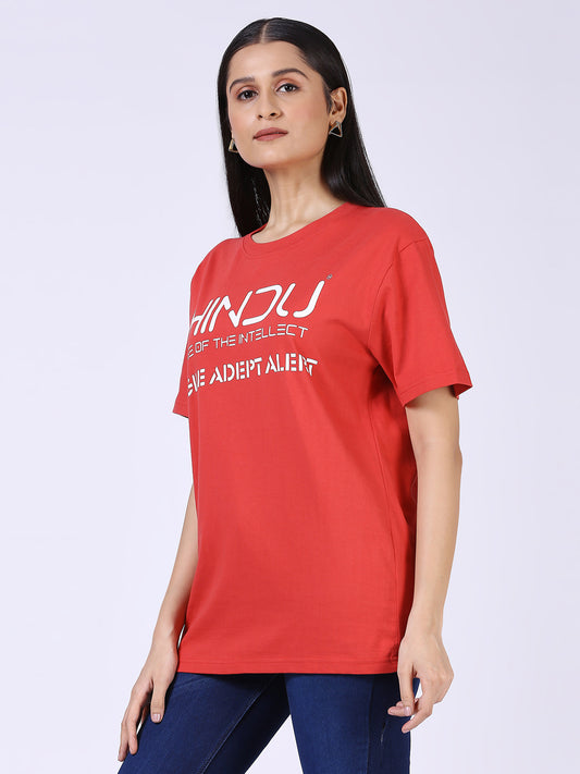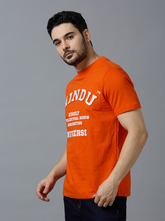 ORANGE RIBNECK PUFFED PRINT HINDU UNIVERSE CONTEMPORARY STYLE