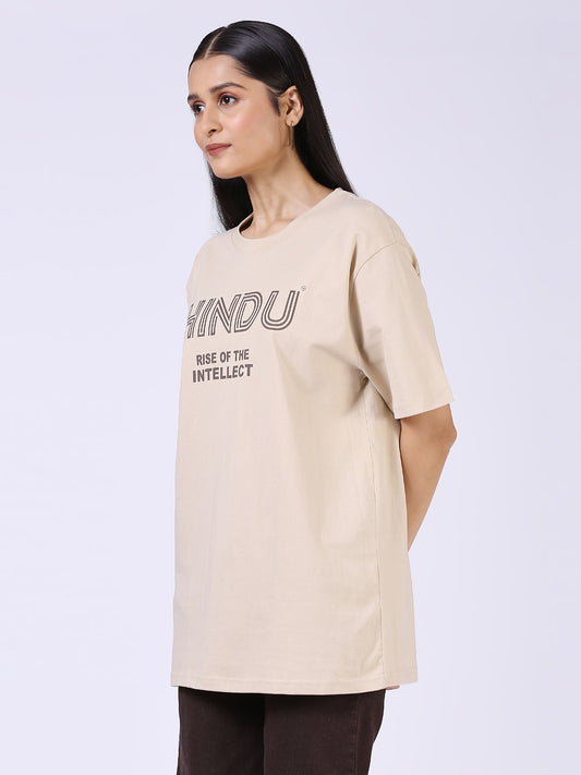 CREAM RIBNECK TSHIRT BLACK PRINT